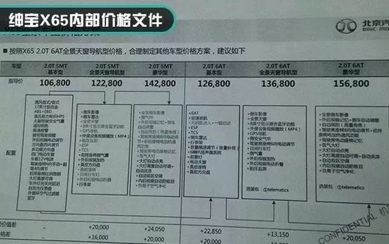 紳寶X65疑似售價曝光 10.68-15.68萬元