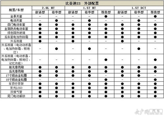 近日,一組比亞迪S3的配置表被曝光,新車依據(jù)其配置將推出搭載兩款發(fā)動機的共8款車型。另據(jù)了解,該款車型將在今年第二季度正式上市。