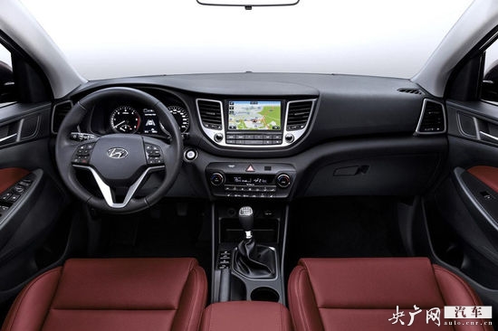 車輛內(nèi)部,全新ix35標準的韓式內(nèi)飾造型并不會讓人感到陌生,簡約的中控臺設(shè)計功能分區(qū)明確,上方的音響導(dǎo)航面板采用銀色飾板點綴,方向盤采用三幅鏤空式造型并輔以銀色飾板。內(nèi)飾配色以黑色為主基調(diào),同時還提供了酒紅色的真皮座椅作為選裝。