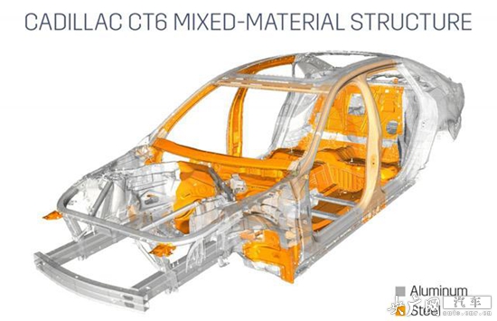 凱迪拉克CT6基于Omega后驅平臺打造,車身框架的64%都采用鋁合金材料,車身面板全部由鋁合金打造,同時采用了高強度鋼來增強重要位置的強度。