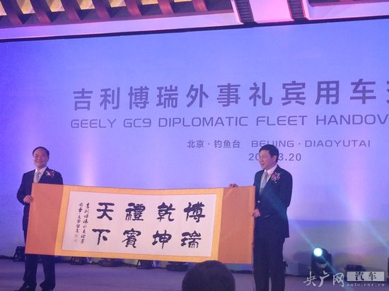 3月20日,北京 今天下午,首批20輛吉利博瑞外事禮賓用車交付儀式在北京釣魚臺(tái)國(guó)賓館舉行,外交部部長(zhǎng)助理錢洪山和吉利控股集團(tuán)董事長(zhǎng)李書福作為雙方代表完成了交付儀式。比利時(shí)駐華大使馬懷宇,烏拉圭駐華大使羅薩里奧·波特利,白俄羅斯駐華公使伊格爾,英國(guó)駐華公使魏林等外交使節(jié)也參加了交付儀式。