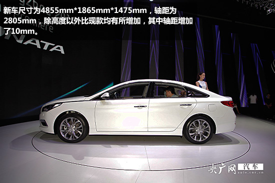 新車尺寸為4855mm*1865mm*1485mm,軸距為2805mm,除高度以外比現(xiàn)款均有所增加,其中軸距增加了10mm。
