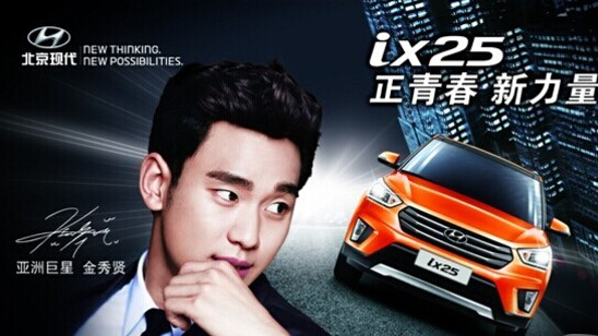 而現(xiàn)代起亞作為韓國(guó)企業(yè)自然更清楚韓流的力量,也更有便利性,所以趁著燙手把這兩位偶吧簽入旗下,而不論是起亞K3還是現(xiàn)代ix25都主打年輕時(shí)尚動(dòng)感,車型定位和明星定位非常符合,而這兩位明星代言人的吸睛程度非比尋常,對(duì)于新車型(尤其是ix25)的推廣作用顯而易見(jiàn)。