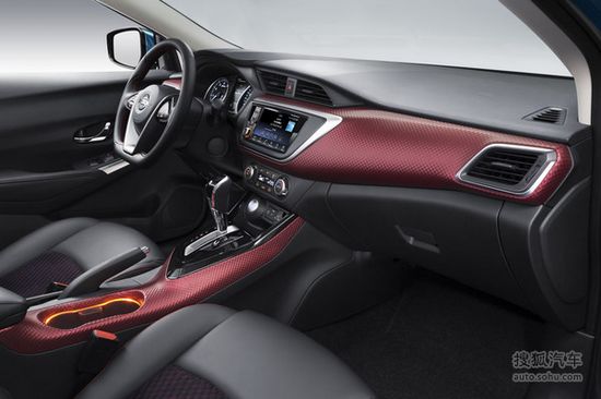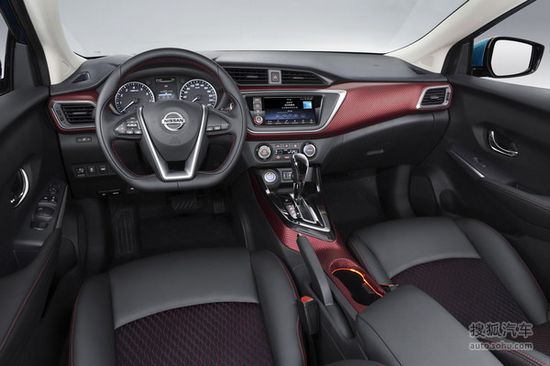 從圖上看,藍(lán)鳥采用了D型方向盤設(shè)計(jì),以營(yíng)造更好的運(yùn)動(dòng)駕駛感受。在內(nèi)飾顏色上,則采用了極具動(dòng)感的紅黑配色方案,并對(duì)儀表臺(tái)、中控臺(tái)配以紋理加飾,鉆石形狀紋理,加飾表面如豪華運(yùn)動(dòng)車的碳纖維般質(zhì)感,極大提升了運(yùn)動(dòng)感和時(shí)尚感,值得一提的是,這種紋理加飾也是日產(chǎn)車型首次采用。