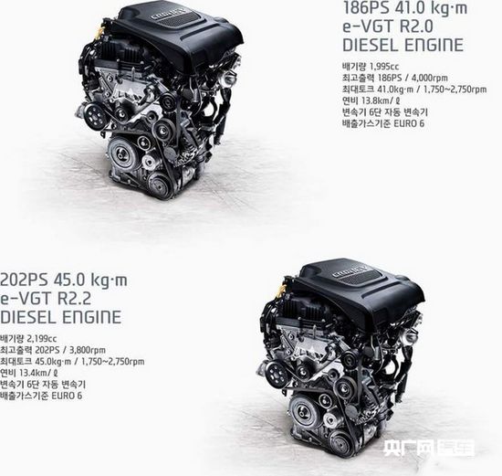 動(dòng)力系統(tǒng)方面,韓國(guó)方面新車將推出5款車型,提供兩款柴油動(dòng)力,2.0T版本最大輸出功率為186馬力,2.2T最大輸出功率為202馬力,兩款發(fā)動(dòng)機(jī)都將滿足歐六排放標(biāo)準(zhǔn)。