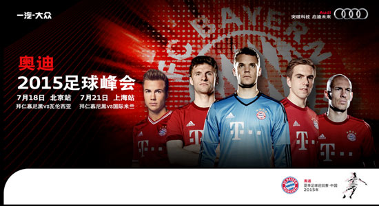 奧迪近些年來一直熱衷體育事業(yè),不論是剛剛結(jié)束的2015年環(huán)青海湖國際自行車賽還是更加久遠(yuǎn)的2003年皇馬中國行,這確實(shí)都是體育迷們值得珍藏的記憶。未來一周,奧迪還將攜手拜仁在上海和廣州分別迎戰(zhàn)國際米蘭和廣州恒大,魔都和羊城的球迷朋友們,有福了。