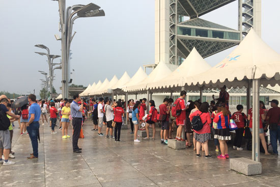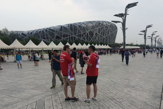 拜仁在中國的影響力毋庸置疑,賽前,偌大的鳥巢周邊兜售拜仁球衣圍巾的攤位不下五個,而竟沒有一家攤位售賣其對手瓦倫西亞的球衣。各個拜仁球迷組織終于時隔三年再次成為中國最幸福的球迷,為了給自己心愛的球隊主場般的感受,他們都提前三四個小時就趕到了鳥巢,換上各個時代的拜仁主客場隊服并練習(xí)加油口號和隊歌。