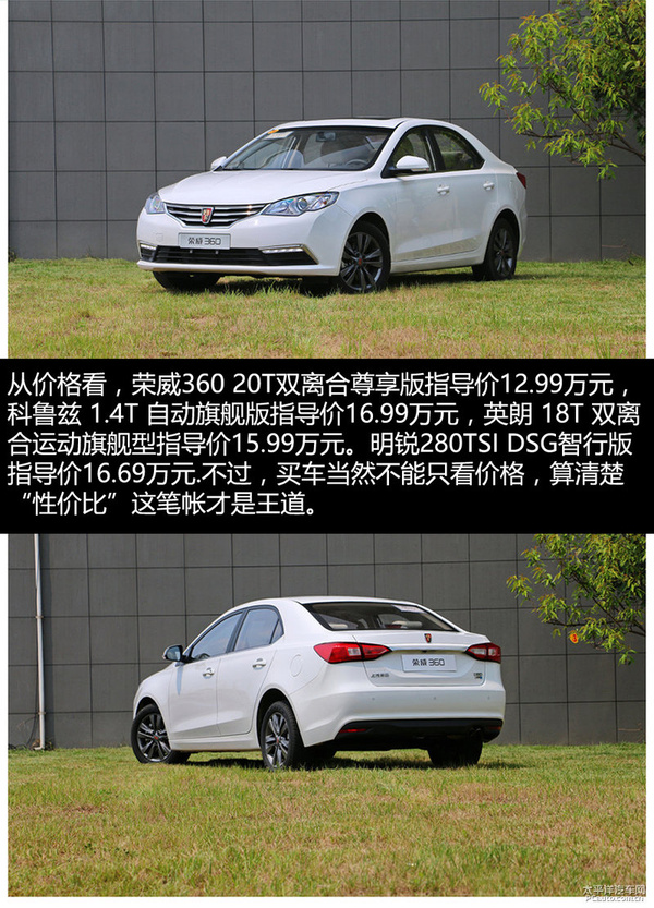 由于國內(nèi)SUV市場車型的放量增長,轎車的市場份額受到一定程度的沖擊,銷量增速已經(jīng)明顯放緩,不過就A級車市場來看情況還算是比較樂觀的。曾經(jīng)的80、90后已經(jīng)成長起來,并有一大部分成為了當下社會的中堅力量,他們也有了消費汽車的能力,而對于這一代的人來說,他們更重視的是實際的用戶體驗及所謂的“價值感”,不光這點,還要符合預算,空間、操控、配置和用車成本等都要列入重點“考察項目”。今天筆者特地精心挑選了4款熱門車型:榮威360、科魯茲、英朗,明銳,分別從它們的價格、動力、性能、油耗、空間等方面一一分析,看誰才是性價比之王。