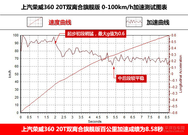 我們最終測得榮威360的百公里加速最好成績?yōu)?.58秒,整個加速過程彭拜有力,動力的輸出也是源源不斷,讓駕駛員很有信心。此外,榮威360的制動表現(xiàn)也不錯,38.05米的100—0km/h制動距離與競品相比可謂最優(yōu)。