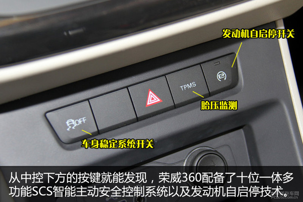 榮威360在安全配置方面卻做得十分到位,如十位一體多功能SCS智能主動安全控制系統(tǒng)(涵蓋VSC車身穩(wěn)定控制、iTPMS間接式胎壓監(jiān)控、HSA坡道起步輔助以及HRC坡道溜車控制系統(tǒng)等),加上高強度車身以及全車6個安全氣囊,可全方位保障行車安全。