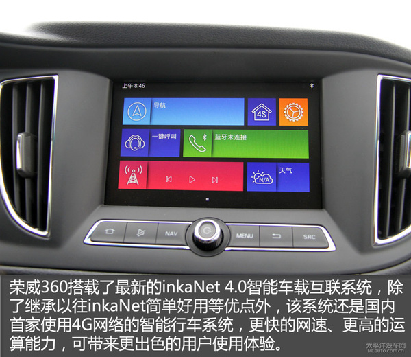 另外,榮威360還搭載了最新的inkaNet 4.0智能車載互聯(lián)系統(tǒng)。inkaNet4.0網(wǎng)絡智能行車系統(tǒng)采用iMX6雙核處理器,處理速度較前代提升50%以上,特別讓人驚喜的是,inkaNet4.0還支持蘋果CarPlay,果粉們將無需再擔心手機系統(tǒng)與車載系統(tǒng)不匹配的問題。只需將手機與車機互聯(lián),這塊8寸大屏就能變成蘋果手機的“第二塊屏”,用戶即可便捷享受手機系統(tǒng)的強大功能。該系統(tǒng)還具備MirrorLink互聯(lián)、多媒體影音娛樂等多項功能,完全能滿足“新小家庭”對車內(nèi)娛樂的需求。
