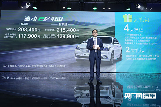 央廣網(wǎng)北京10月19日消息(記者葛成)18日, 長(zhǎng)安逸動(dòng)EV460在北京正式上市。新車共推出兩款款車型,售價(jià)分別為20.34 /21.54萬元,補(bǔ)貼后售價(jià)則為11.79/12.99萬元。新車最大的亮點(diǎn)在于NEDC工況下續(xù)航里程可以達(dá)到430公里。