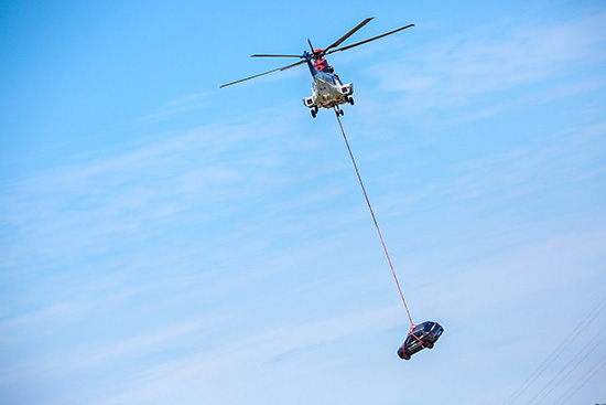 上午十時(shí)許,奔騰X40被直升飛機(jī)吊起,空投翻滾試驗(yàn)開(kāi)始。隨后車(chē)輛被直升飛機(jī)以120KM/H的速度從空中直接拋向地面,在地面上不斷翻滾,發(fā)生巨大聲響和激烈碰撞。在經(jīng)歷了嚴(yán)重的撞擊、翻滾后,奔騰X40經(jīng)受住了考驗(yàn),車(chē)身無(wú)明顯變形,車(chē)內(nèi)試驗(yàn)假人沒(méi)有受到“傷害”。