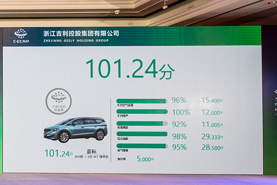 吉利嘉際以總分101.24獲得C-ECAP白金生態(tài)評(píng)價(jià)