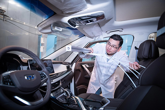 工作人員正在對(duì)嘉際進(jìn)行VOC有害物質(zhì)測(cè)試