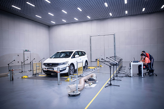 研發(fā)中心由整車研究院、汽車動(dòng)力總成研究院、新能源汽車研究院、汽車創(chuàng)意設(shè)計(jì)中心構(gòu)成。其研究院整車試驗(yàn)室設(shè)置有常溫浸車區(qū)、排放試驗(yàn)室、耐久轉(zhuǎn)鼓試驗(yàn)室、整車異響試驗(yàn)室、整車通過(guò)噪聲試驗(yàn)室等。其中,常溫浸車區(qū)可實(shí)現(xiàn)的溫度范圍為23-27度,用于放置試驗(yàn)車6-36小時(shí);排放試驗(yàn)室二由四驅(qū)底盤測(cè)功機(jī)、排放分析儀、環(huán)境艙和陽(yáng)光模擬系統(tǒng)組成,可開展全年全天候環(huán)境模擬試驗(yàn),是具有國(guó)際專業(yè)水準(zhǔn)的綜合性試驗(yàn)室;耐久轉(zhuǎn)鼓試驗(yàn)室由轉(zhuǎn)鼓、風(fēng)機(jī)和控制電機(jī)等系統(tǒng)組成,可開展整車16萬(wàn)公里的耐久性試驗(yàn)、磨合試驗(yàn)、機(jī)械阻力試驗(yàn)和整車標(biāo)定試驗(yàn)等。在這里,嘉際在研發(fā)過(guò)程中經(jīng)歷了嚴(yán)苛測(cè)試。