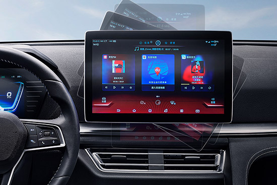 比亞迪官方將新車駕駛艙稱為黃金分艙設計。其中,中控臺向主駕偏斜7°,BYD Heart智匯之心中控臺采用全新設計,DiLink 2.0智能網(wǎng)聯(lián)系統(tǒng)支持400萬+APP,還囊括12.8英寸8核自適應旋轉(zhuǎn)懸浮Pad、智能語音交互、智能云服務、OTA智能遠程升級等亮點科技,現(xiàn)場還展示了全新的360度全息透明影像系統(tǒng),駕駛員可在車內(nèi)查看車輛下方情況。