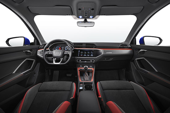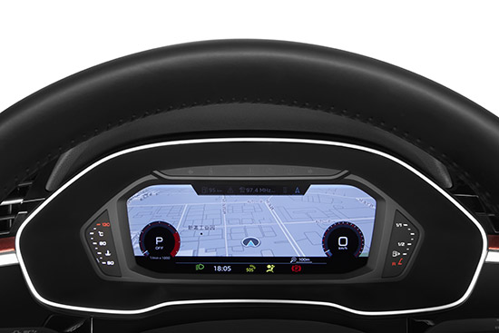 內(nèi)飾設(shè)計方面,作為一輛A級SUV,奧迪Q3保持簡潔的設(shè)計理念,并沒有跟人紛繁復(fù)雜的感覺。全系標(biāo)配全液晶儀表盤和MMI中控觸摸屏的聯(lián)動設(shè)計,儀表盤的彩色數(shù)字儀表將發(fā)動機轉(zhuǎn)速、車速及其他行車信息以明亮、清晰的全彩界面顯示其上。高配車型的12.3英寸奧迪虛擬駕駛座艙更可以在儀表盤顯示完整導(dǎo)航地圖,令重要的行車信息一覽無余。