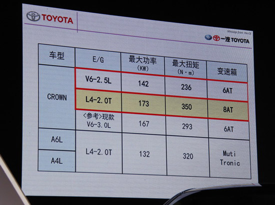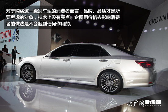對于購買這一級別車型的消費者而言,品牌、品質(zhì)才是所要考慮的首要對象,所以在這里劣幣是不可能驅(qū)逐良幣的,技術(shù)上沒有亮點,企圖用價格去影響消費者的做法是不會起到任何作用的。更何況在產(chǎn)品的核心——動力系統(tǒng)方面,一汽豐田的新皇冠在產(chǎn)品實力方面可謂一敗涂地。
