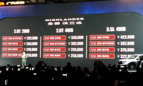 | 廣汽豐田 全新漢蘭達 | 指導價(萬元) |