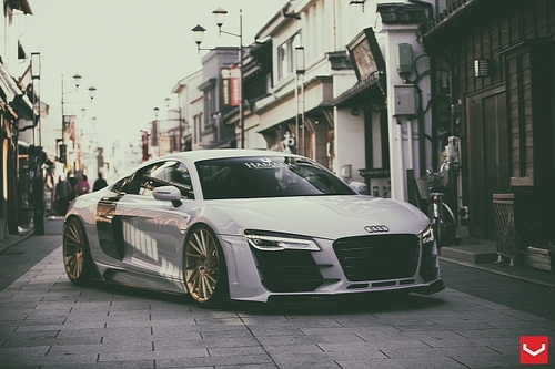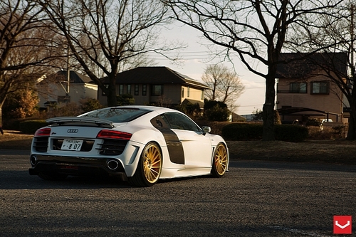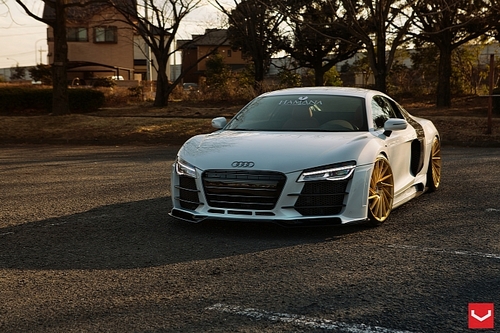 奧迪R8改裝鑒賞 換穿土豪金精致新輪轂