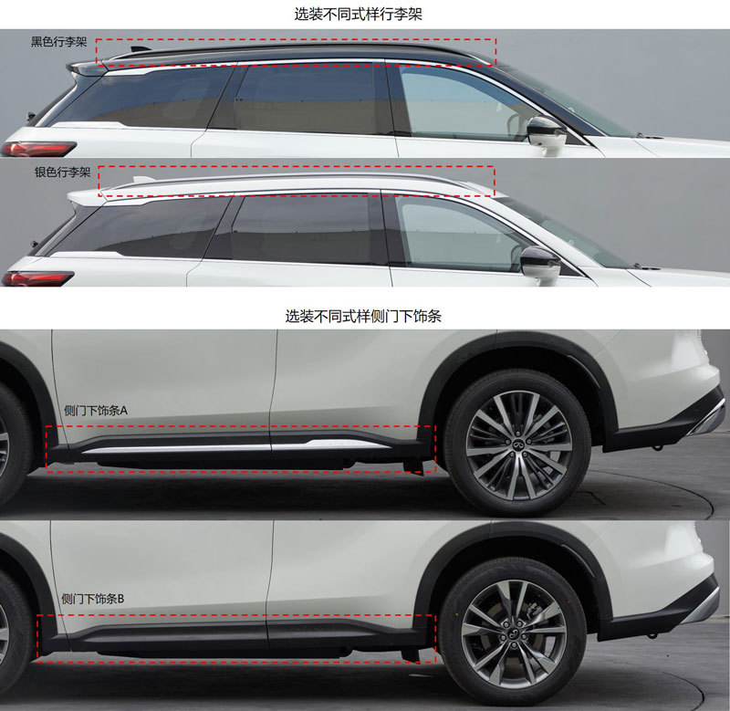 在車身尺寸方面,新車的長寬高分別為4670/1855/1655(1650)mm,軸距為2840mm,整備質量為1561kg。配置方面,新車將根據不同車型提供前組合燈、后組合燈、引擎蓋裝飾條、車窗裝飾條、車型行李架以及全景天窗等多種配置選擇。