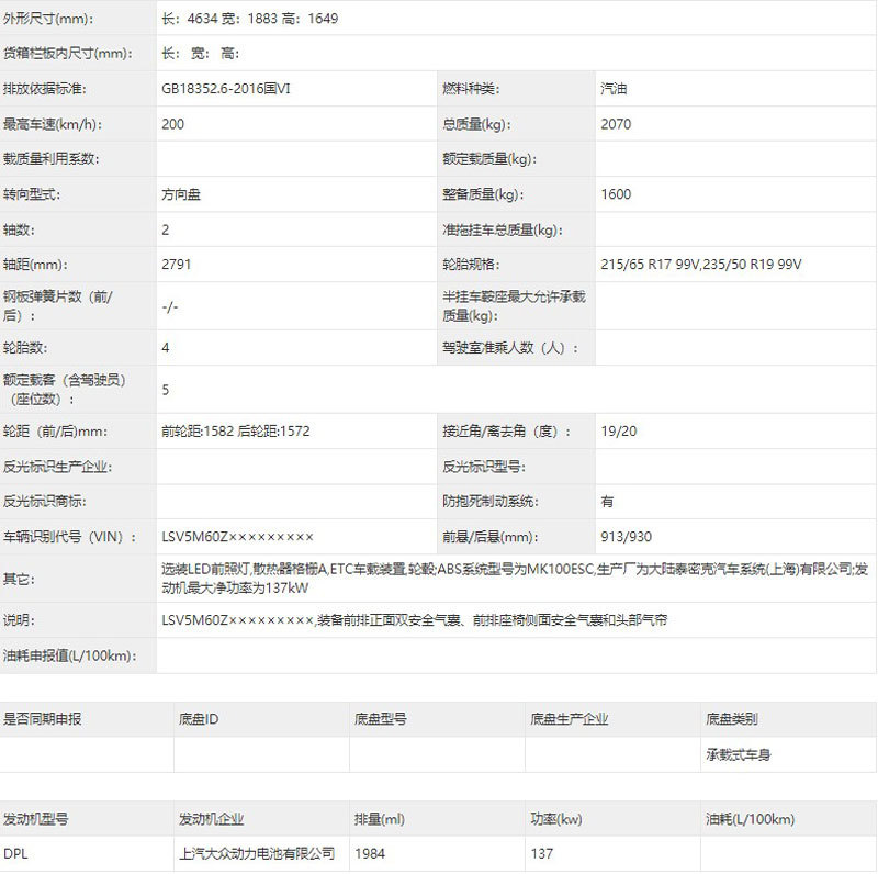 在車身尺寸方面,新車長寬高分別為4634/1883/1649mm,軸距為2791mm,整備質量為1600kg,輪胎擁有215/65R17、235/50R19兩種規(guī)格可供選擇。配置方面,新車將根據不同車型提供雙色車身、雙色后視鏡、帶攝像頭后視鏡、前雷達、后雷達等多種配置選擇。