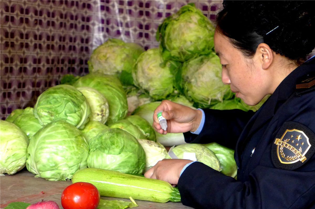 近年來,康樂縣致力于強(qiáng)化縣級食品藥品檢驗(yàn)檢測機(jī)構(gòu)建設(shè),除將鄉(xiāng)鎮(zhèn)食藥所經(jīng)費(fèi)列入財(cái)政預(yù)算外,還為15個(gè)鄉(xiāng)鎮(zhèn)食藥所統(tǒng)一解決了辦公用房。2015年以來,全縣已有13個(gè)鄉(xiāng)鎮(zhèn)食藥監(jiān)管所通過了省、州驗(yàn)收,創(chuàng)建達(dá)標(biāo)率86.66%。2016年落實(shí)鄉(xiāng)鎮(zhèn)食藥所預(yù)算經(jīng)費(fèi)30萬元,實(shí)際每個(gè)所按照工作量到位資金3-5萬元,超出預(yù)算50%以上。目前,全縣已建成鄉(xiāng)鎮(zhèn)食品藥品快檢室15家、食用農(nóng)產(chǎn)品快檢室2家。截至2017年4月底,全縣已開展食品安全快速檢測393批次,合格率98.9 %,為食品藥品安全監(jiān)管提供了技術(shù)支撐。圖為康樂縣食用農(nóng)產(chǎn)品檢驗(yàn)人員正在蔬菜店進(jìn)行農(nóng)藥殘留快檢。