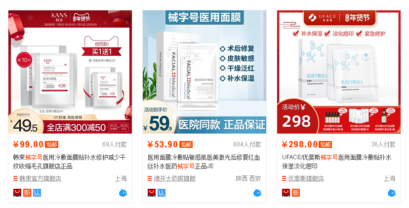 記者搜索電商平臺發(fā)現(xiàn),“械字號”面膜仍在銷售
