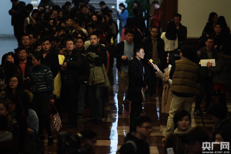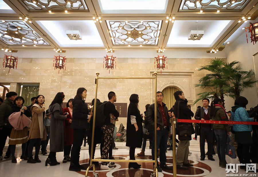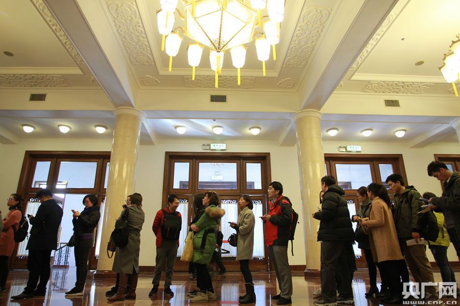 2017年全國兩會即將召開,3月1日下午,參加十二屆全國人大五次會議新聞報道的記者在人民大會堂領取采訪證件。十二屆全國人大五次會議將于3月5日在北京開幕。石昊鑫 攝 -