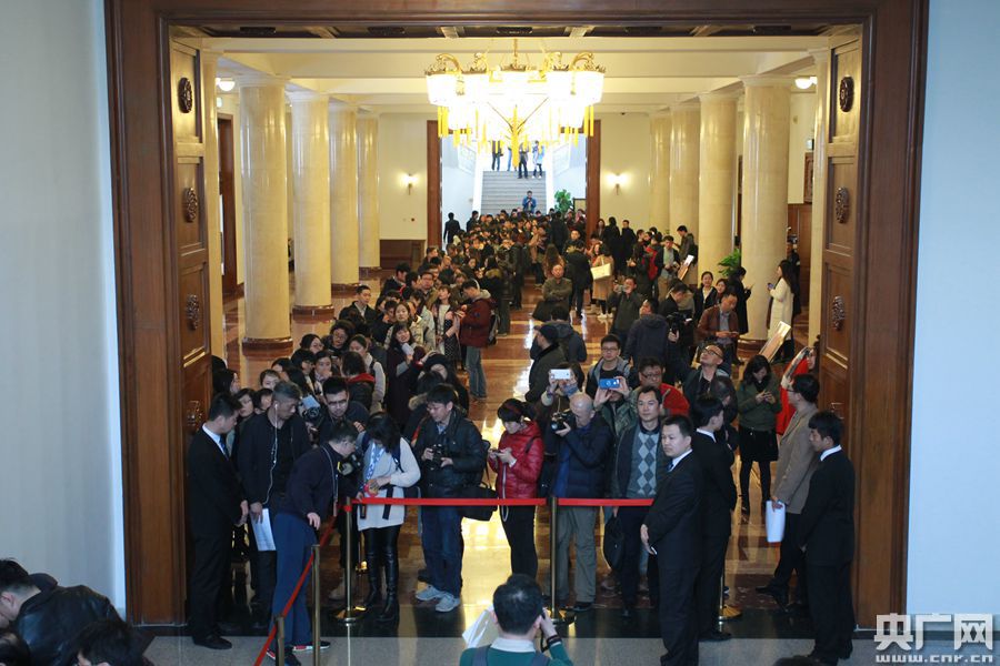 2017年全國兩會即將召開,3月1日下午,參加十二屆全國人大五次會議新聞報道的記者在人民大會堂領取采訪證件。十二屆全國人大五次會議將于3月5日在北京開幕。石昊鑫 攝