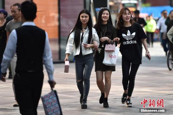 圖為北京三里屯街頭的姑娘小伙們換上夏裝出行。中新網(wǎng)記者 金碩 攝