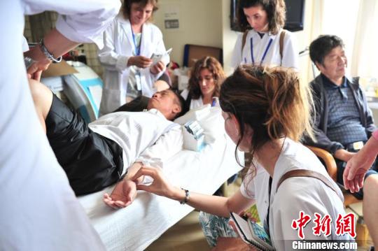 中新網(wǎng)昆明7月10日電 (記者 胡遠(yuǎn)航)暑假伊始,云南省中醫(yī)醫(yī)院的“洋面孔”就多了起來。10日,在推拿診室,西班牙見習(xí)生Idaira已經(jīng)習(xí)慣了病人多瞅兩眼式“特別關(guān)注”。