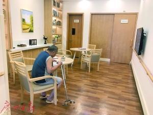 在這里,每位老人入院就建立健康檔案,每天早晚均有醫(yī)生護士兩次查房,一一記錄老人生命體征的監(jiān)測、呼吸、脈搏、進食飲水等。此外,護士24小時值班,有些老人諸如糖尿病需要定時用藥,“樓下醫(yī)生開出藥方,由護士喂藥或打針!贬t(yī)院還提供康復(fù)訓(xùn)練,面向一些失能、失智老人。