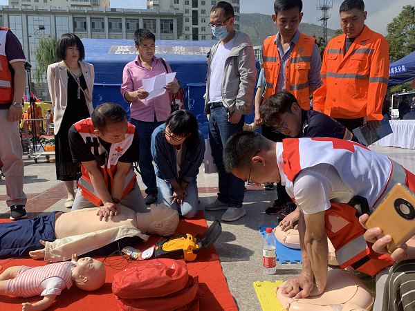 除此以外,鄭劍偉還積極參與到應(yīng)急救護(hù)相關(guān)知識的宣傳和普及活動中。在防災(zāi)減災(zāi)日、世界紅十字日、世界急救日,在兒童督導(dǎo)員、養(yǎng)老護(hù)理員、話務(wù)員培訓(xùn)班等活動中,都能夠發(fā)現(xiàn)他的身影。作為一名專業(yè)的應(yīng)急救護(hù)培訓(xùn)師,若想把急救知識講到位、急救技能做到位,就須下苦功夫、真功夫。培訓(xùn)期間,鄭劍偉基本上是全程跪著演示教學(xué),每次普及、培訓(xùn)結(jié)束后, 他的膝蓋都是腫的,但臉上卻有著堅韌欣慰的笑容!岸嘁粋人學(xué)應(yīng)急救護(hù)知識,就少一個生命流失”,鄭劍偉說道。