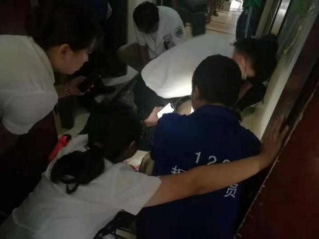 2020年7月夏振輝火速趕到現(xiàn)場給觸電導(dǎo)致心跳驟停的裝修工人進(jìn)行心肺復(fù)蘇