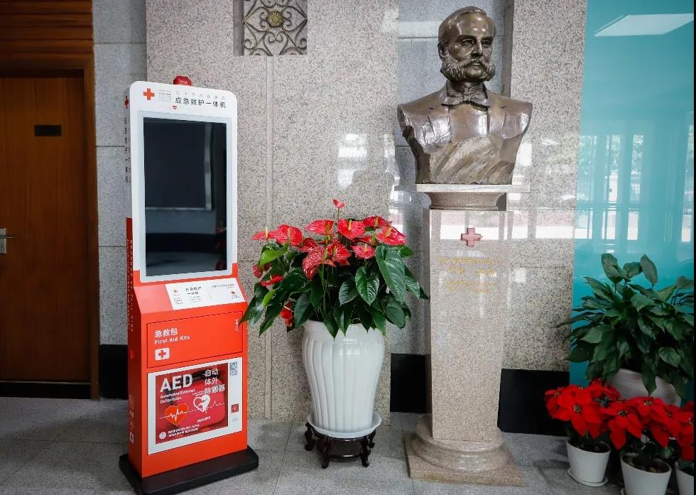 “紅十字應(yīng)急救護(hù)一體機(jī)”是由中國(guó)紅十字基金會(huì)研發(fā)的,集合AED、急救包、交互大屏于一體的應(yīng)急救護(hù)設(shè)備。