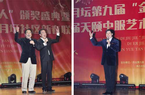 著名相聲表演藝術(shù)家、天頤中服藝術(shù)家姜昆、戴志誠現(xiàn)場演出(左圖)中國著名男高音歌唱家、天頤中服藝術(shù)家魏金棟現(xiàn)場演出