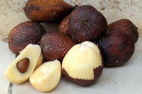 蛇皮果產(chǎn)于印尼等熱帶地區(qū),棕褐色的外皮上覆蓋一層密密麻麻的鱗片,像是蛇皮,因此形象地稱為“蛇皮果”。蛇皮果的果膠和鉀含量居水果之首,對(duì)身體十分有益。