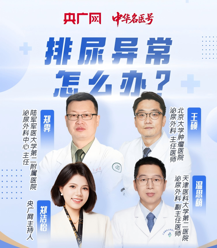 近日,陸軍軍醫(yī)大學(xué)第二附屬醫(yī)院泌尿外科中心主任鄭霽、北京大學(xué)腫瘤醫(yī)院泌尿外科主任醫(yī)師王碩、天津醫(yī)科大學(xué)第二醫(yī)院泌尿外科副主任醫(yī)師溫思萌做客央廣網(wǎng)《中華名醫(yī)號》節(jié)目,并給出了解答。