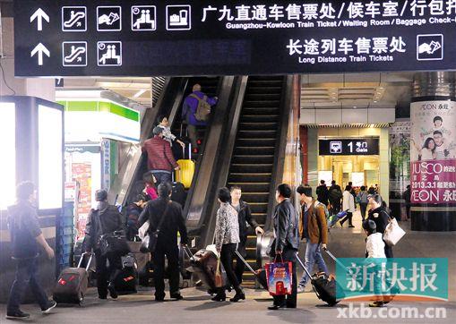 ■廣州東站廣九直通車的候車大廳外,一大批乘客等待赴港。