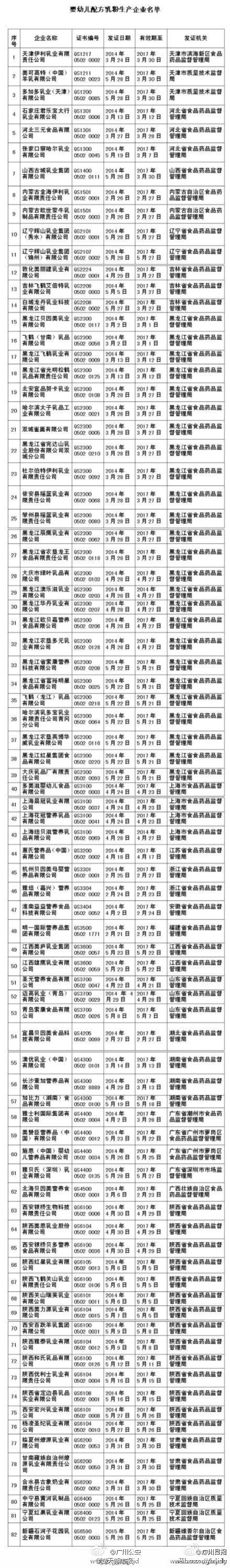 國(guó)家食藥局發(fā)出公告,經(jīng)換證審查,全國(guó)82家嬰幼兒配方奶粉企業(yè)重新獲生產(chǎn)許可證,51家企業(yè)未通過(guò)審查、申請(qǐng)延期和注銷,將停止生產(chǎn)嬰幼兒配方乳粉。