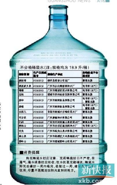 記者發(fā)現(xiàn),共有13批次的桶裝水質(zhì)量不合格,屬于抽檢的食品中不合格批次最多的類型。在不合格的13批次的桶裝水中,有10批次的質(zhì)量問題是菌落總數(shù)超標,其中廣州市裕龍山泉水有限公司生產(chǎn)的甘龍牌飲用天然凈水,菌落總數(shù)超標3100倍。另外,有5批次(有2批次同時存在菌落總數(shù)超標)為電導(dǎo)率不達標。