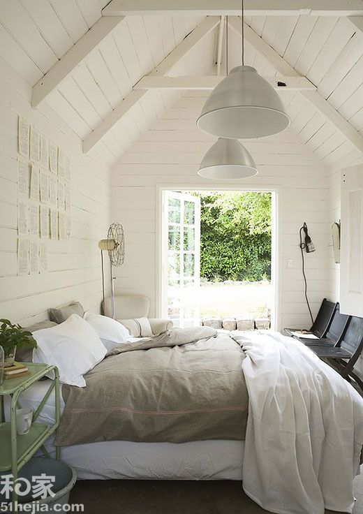 舒適的床,暖暖的陽光,是不是看見這樣的設(shè)計(jì)就想躺上去睡一覺呢!純白和灰色相容的空間充滿禁欲的感覺,但是窗外的點(diǎn)點(diǎn)綠色卻在無形中增加了不少生機(jī),讓人更加想破壞臥室中的一片沉靜,看看在鬧騰之后臥室又是怎樣的一番風(fēng)情!