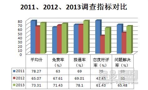 除行業(yè)平均得分排名比較靠前外,家具行業(yè)客服電話(huà)的免費(fèi)率、接通率、態(tài)度好評(píng)率、問(wèn)題解決率等各項(xiàng)指標(biāo)較去年均有所提高。從各項(xiàng)指標(biāo)中可以看出,家具行業(yè)的售后電話(huà)服務(wù)水平較2012年有所提升。