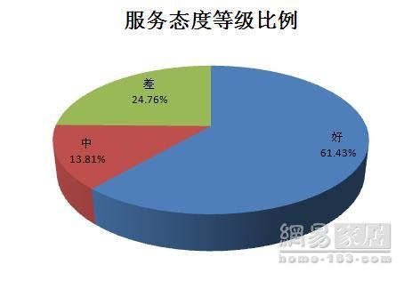 調(diào)查結(jié)果顯示家具行業(yè)售后服務(wù)整體水平有所提高的同時(shí),調(diào)查人員也發(fā)現(xiàn)家具行業(yè)的售后服務(wù)電話(huà)依然存在很多問(wèn)題,比如一些企業(yè)的客服電話(huà)為經(jīng)銷(xiāo)商服務(wù),在面對(duì)消費(fèi)者關(guān)于產(chǎn)品質(zhì)量資訊的時(shí)候態(tài)度顯得不耐煩,急于把服務(wù)的責(zé)任推給經(jīng)銷(xiāo)商,急于結(jié)束通話(huà)的情緒明顯流露。應(yīng)對(duì)消費(fèi)者的投訴顯得非常不專(zhuān)業(yè),服務(wù)態(tài)度差評(píng)率為24.76%。