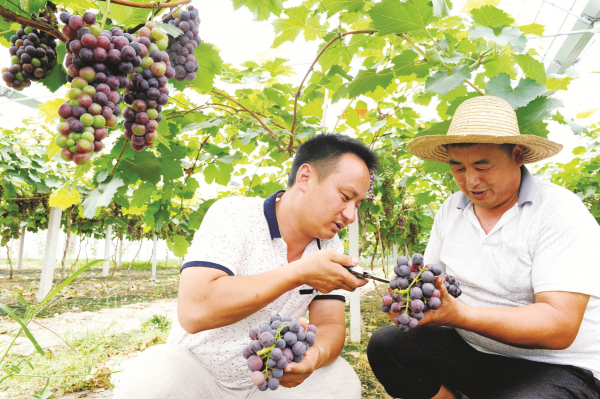 淮南市潘集區(qū)架河鎮(zhèn)楊集村黨員種植大戶劉明星(左)向結(jié)對(duì)扶貧困難戶劉維講解葡萄種植技術(shù);茨鲜凶浴熬珳(zhǔn)扶貧”行動(dòng)啟動(dòng)以來(lái),各級(jí)黨組織中的黨員們,以“兩學(xué)一做”教育活動(dòng)為契機(jī),結(jié)合以“學(xué)”促“做”的實(shí)踐投入到扶貧行動(dòng)中,有效發(fā)揮了黨員的模范帶頭作用,受到了被幫扶對(duì)象的滿意點(diǎn)贊。(工商導(dǎo)報(bào)7月12日?qǐng)?bào)道)