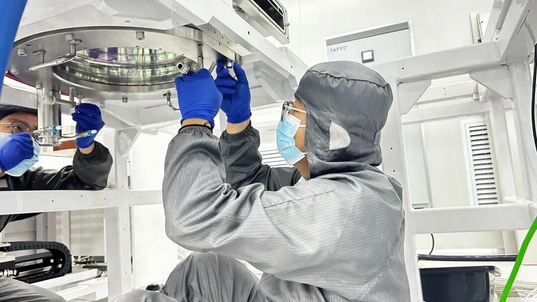 在一塔半導(dǎo)體(安徽)有限公司的無塵車間內(nèi),生產(chǎn)人員正在組裝RTP快速退火設(shè)備的反應(yīng)腔部件(央廣網(wǎng)發(fā) 合肥經(jīng)開區(qū)融媒體中心供圖)
