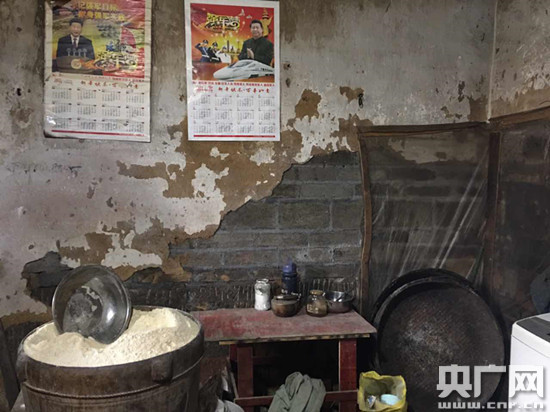 在習(xí)總書(shū)記視察大灣村時(shí)看望的第一戶村民陳澤平的帶領(lǐng)下,記者來(lái)到了陳澤平之前居住過(guò)的地方,用各種木板搭建的屋棚,潮濕采光度極差的臥室,為了防止下雨天屋頂漏雨而鋪懸在半空中的塑料膜,以及房間門(mén)口的大缸里裝著準(zhǔn)備喂養(yǎng)家禽的飼料,將大灣村之前貧窮的模樣展露無(wú)遺。