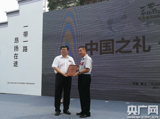 在啟動儀式上,中國文化管理協(xié)會執(zhí)行副主席路建平給車隊成員贈送汪永亨絲綢卷軸,并給車隊授旗;黃山市委書記任澤鋒向中國文化管理協(xié)會副主席李新樂贈送“中國之禮·黃山邀請”;已創(chuàng)作65個“一帶一路”沿途國家重彩山水畫的安徽籍著名畫家李恒,向黃山市委常委、宣傳部長路海燕贈畫《黃山雄風(fēng)》,“從黃山到遠(yuǎn)山”畫展也正式啟動;黃山市委常委、秘書長、統(tǒng)戰(zhàn)部長周天偉與國融證券董事長侯守法揭幕車身“夢幻黃山 禮儀徽州”;譚玉平與奉佑生共同啟動“映象絲路”直播;上,敻曷√卮善骺偨(jīng)理趙春陽給車隊成員贈送“絲路寶船”國瓷。被納入中國之禮的還有來自云南保山的“萬里紅”茶葉和高科技功能面料制成的威森戴樂服飾。